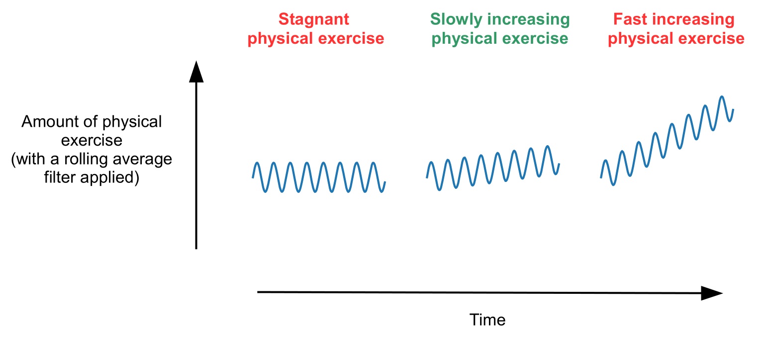 "Slowly increasing" means that your physical activity should look something like the graph in the middle.