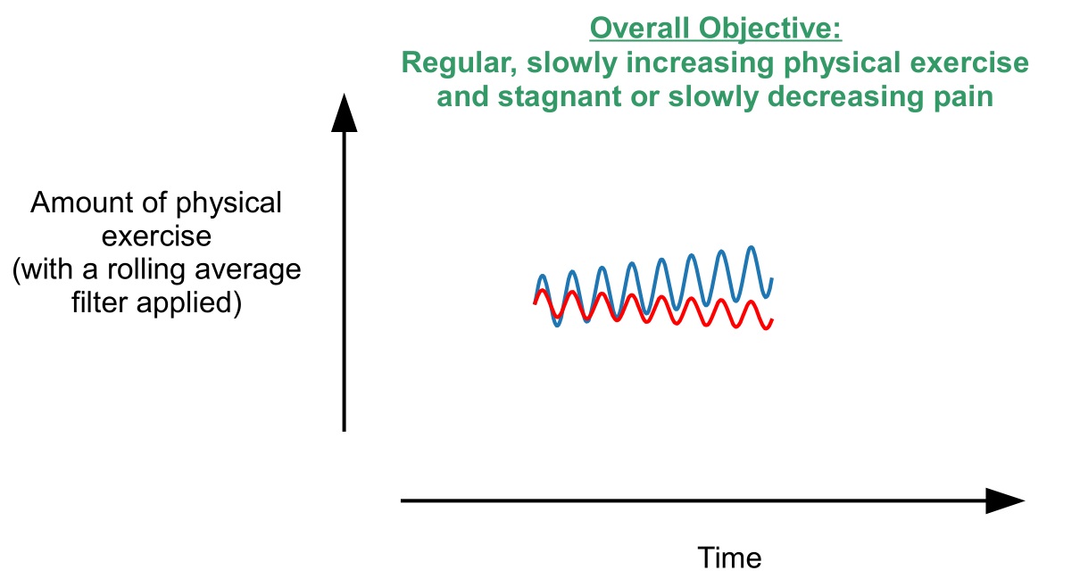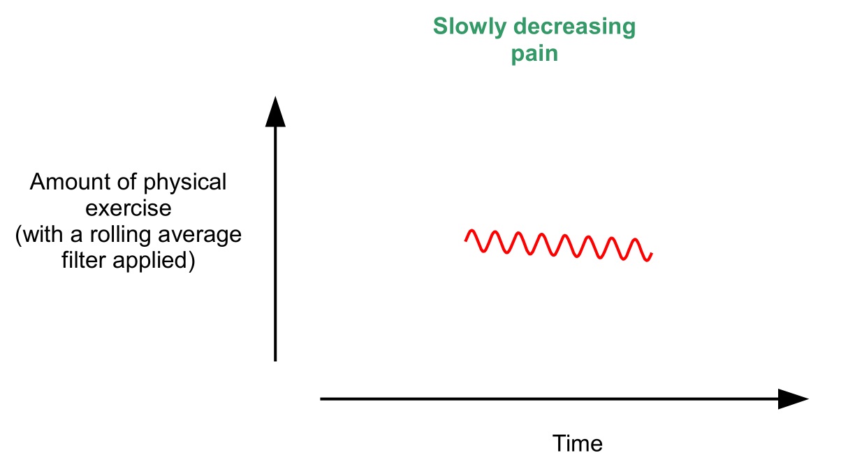 At the same time, you should most often also aim for either stagnant or if possible slowly decreasing pain levels (if your pain can decrease faster, then that's obviously even better; however, that's often not possible once the pain has become chronic).